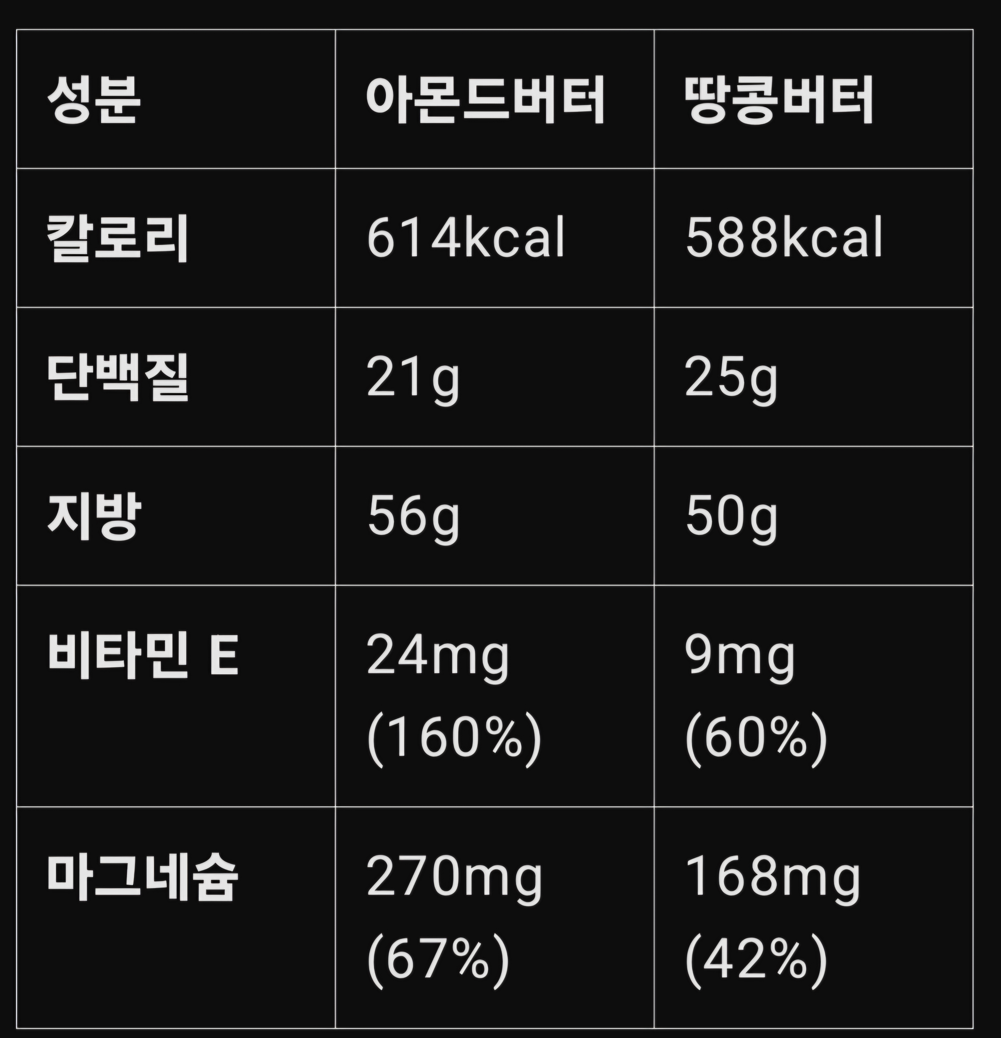 저는 비타민 E 함량이 높은 아몬드버터가 피부 건강에도 좋다고 생각해서 더 선호하게 됐어요.