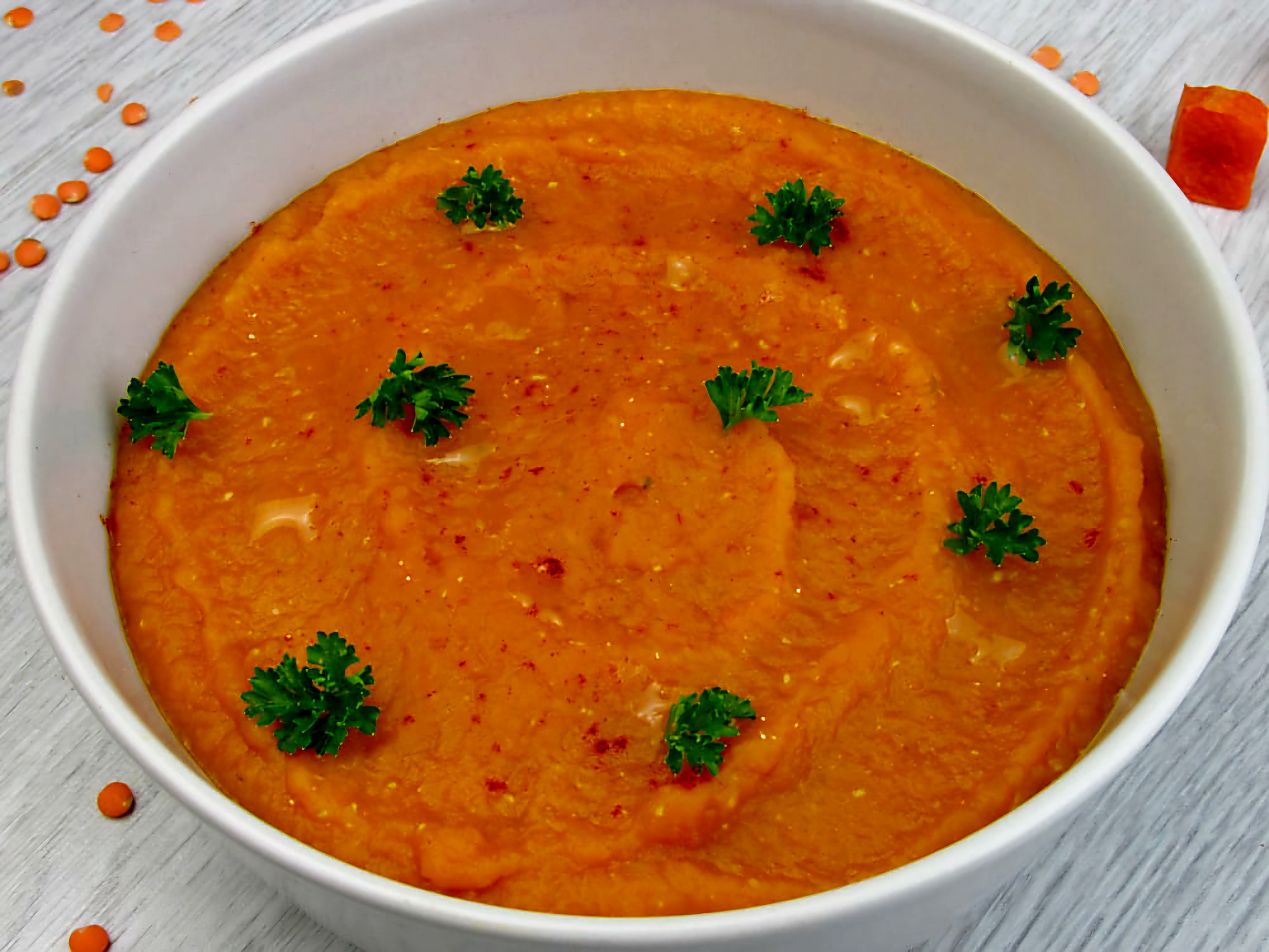 재료: 레드 렌틸콩, 토마토 퓌레, 마늘, 커리 가루