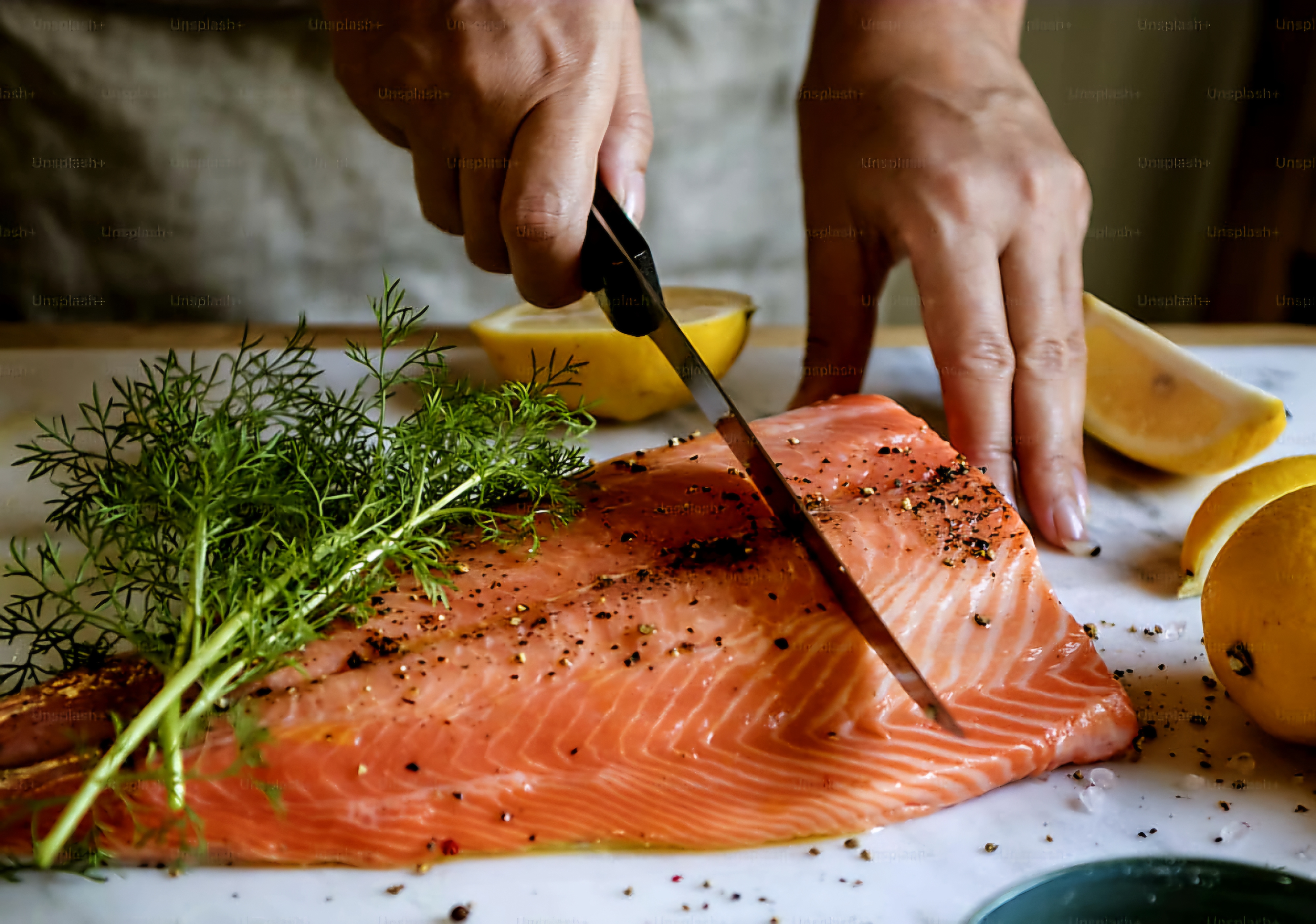 연어: 오메가-3 지방산이 풍부하여 두피 염증을 완화하고 새로운 모낭 형성을 돕습니다.