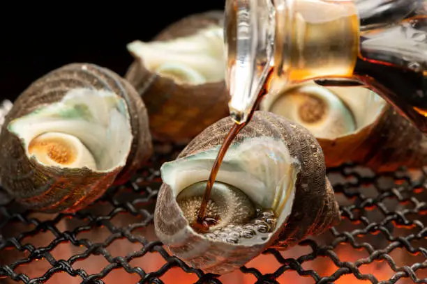 • 참소라 구이: 직화로 구우면 고소한 풍미가 배가됩니다.