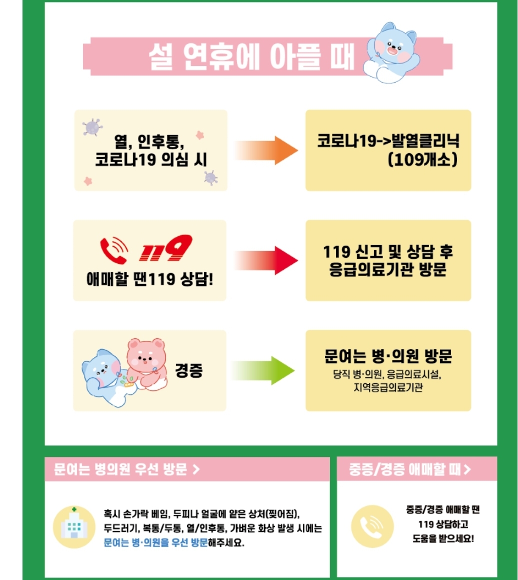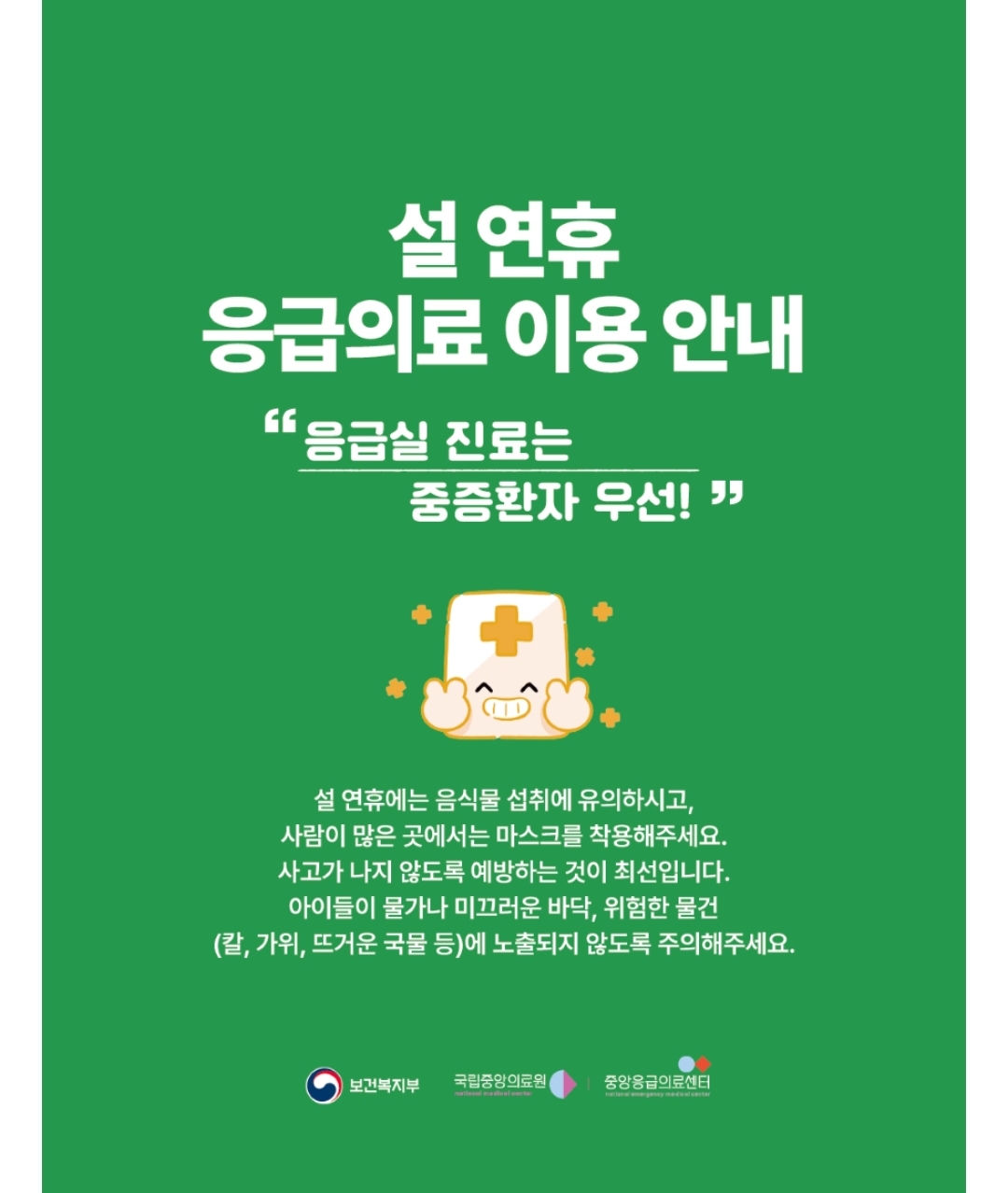 설 연휴 동안 건강을 잘 관리하시고, 갑작스러운 상황에 대비해 위 정보를 기억해 두세요!