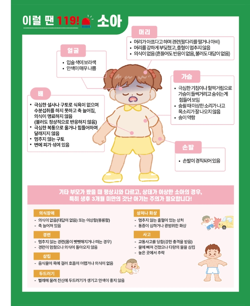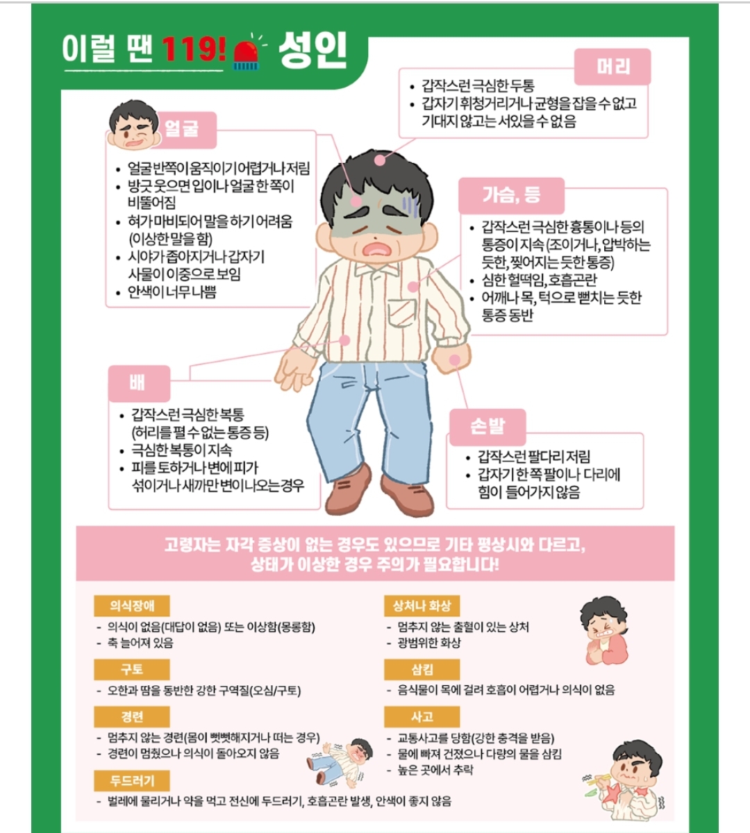 • 119 상담 서비스: 심각한 증상이 있으면 119로 연락하여 증상 상담을 받을 수 있습니다.